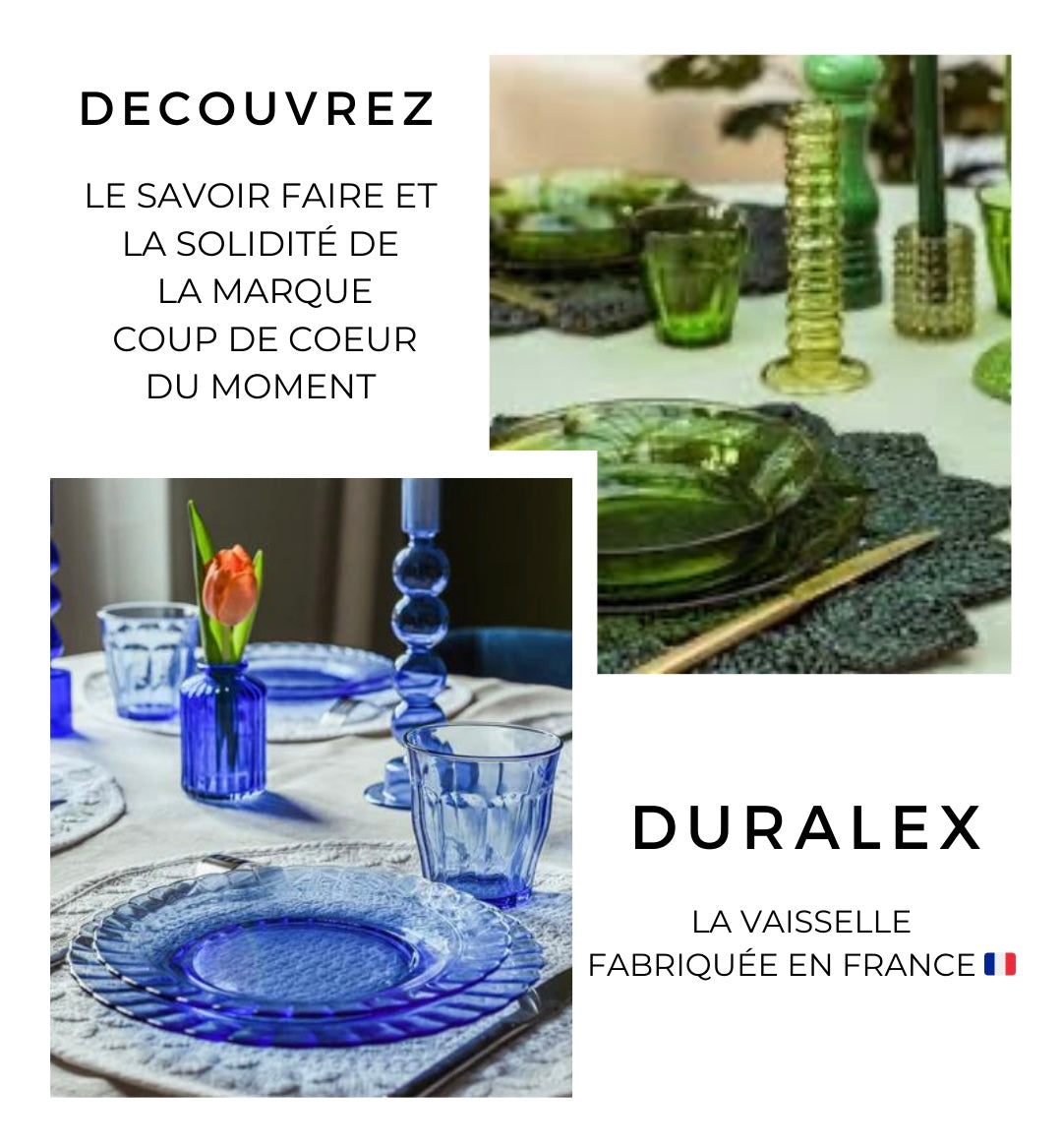 Fabriqué en France à La Chapelle-Saint-Mesmin, en verre trempé, reconnus pour leur solidité et leur durabilité. Duralex est labellisée Entreprise du Patrimoine Vivant depuis 2019, une distinction qui reconnaît les entreprises françaises aux savoir-faire artisanaux et d’industried’excellence .